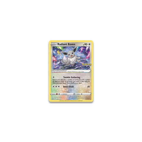 With their unique coloration, Shiny Pokémon are usually tough to find, but the adorable Radiant Eevee is eager to join your team in this collection filled with tons of treasures! In addition to a playable foil card featuring Radiant Eevee, you also get a glossy enamel pin and a playmat that shows off beautiful artwork of this rare Pokémon. Then, find even more awesome Pokémon and Trainer cards in a stack of Pokémon GO booster packs!